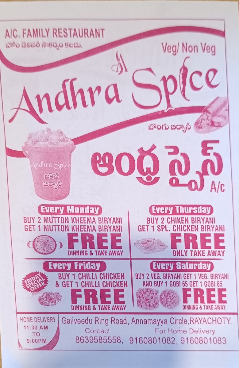 In conclusion, whether you’re a local or a traveler exploring Rayachoty, Andhra Spice promises to deliver an exceptional dining experience filled with authentic flavors and genuine hospitality. Prepare to indulge your senses and savor delicious meals that celebrate the heart of Andhra Pradesh cuisine.