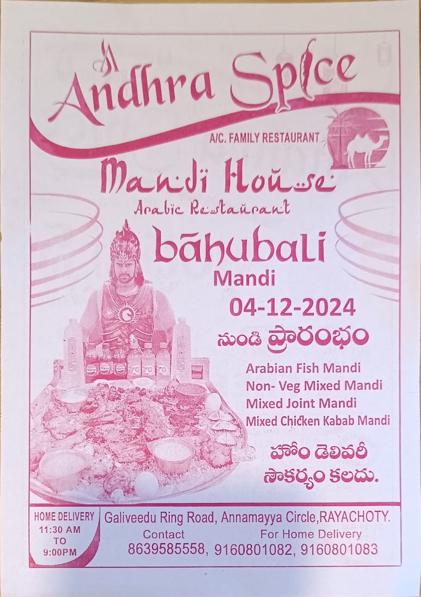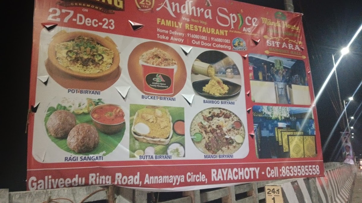 Welcome to Andhra Spice, where the culinary traditions of Andhra Pradesh come alive! Located on Galiveedu Ring Road in Rayachoty, this charming restaurant invites you to indulge in a feast of flavors that celebrate the essence of South Indian cuisine.